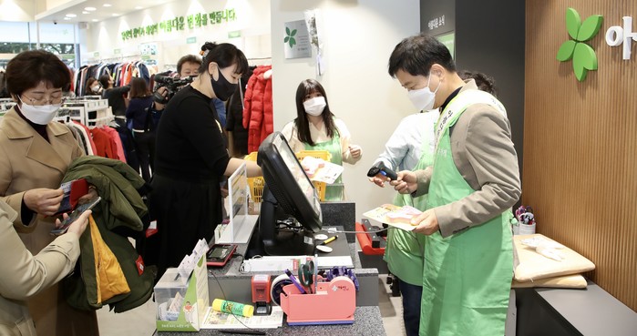 전남교육청이 최근 아름다운가게 목포하당점에서 ‘전남교육청과 함께하는 아름다운 하루’ 행사를 개최했다. 이날 판매 수익금은 지역내 취약계층에게 지원될 예정이다. 사진은 행사에 참석한 장석웅 교육감의 모습. (사진제공=전남교육청)