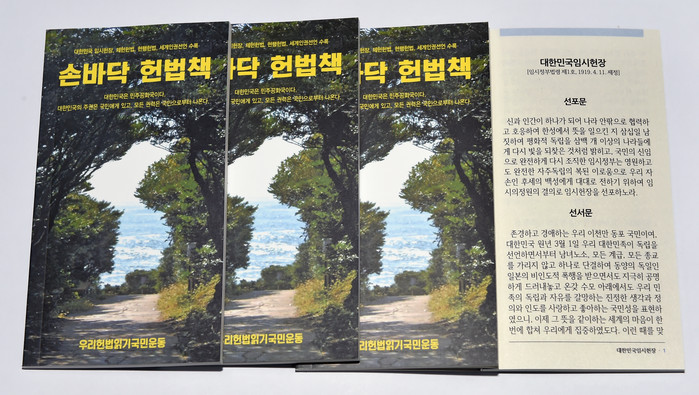 이 헌법책은 손안에 들어오는 휴대폰 크기의 76쪽짜리 작은 소책자로 만들어졌다.