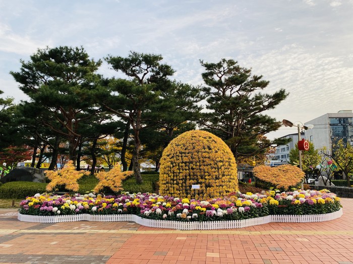 진주시는 국화작품을 지난 29일부터 시작해 이달 15일까지 시청 앞, 촉석루, 종합경기장 등 10여 개의 장소에 시민들이 가을 정취를 느낄 수 있도록 분산 배치해 눈길을 끌고 있다.