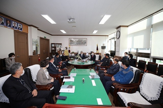 [해남=정찬남 기자] 전남 해남군의회(의장 김병덕)는 지난 10일 의장실에서 쌀생산량 감소 및 소득 하락에 따른 대책 마련을 위한 간담회를 개최했다.