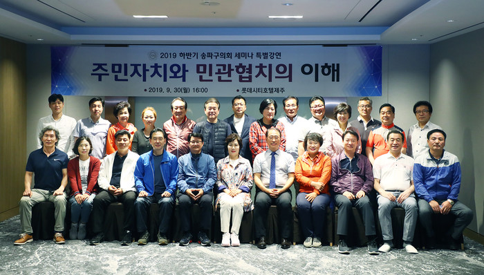 [시민일보 = 이대우 기자] 서울 송파구의회(의장 이성자)가 최근 제주도에서 ‘주민자치와 민관협치의 이해’ 라는 주제로 의원특강 및 세미나를 개최했다.