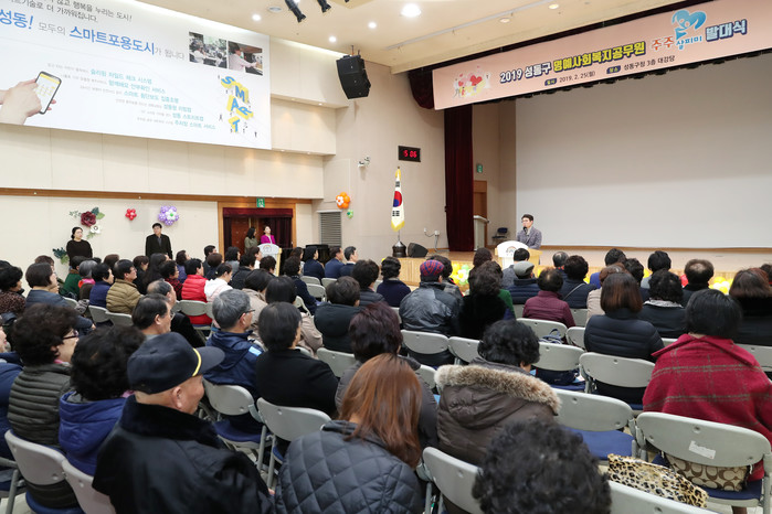 | ▲ 지난해 2월 열린 명예사회복지공무원 ‘주주살피미’ 발대식. (사진제공=성동구청) |