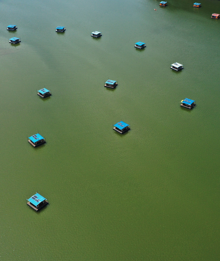지난 30일 경기 용인시 이동저수지가 계속되는 폭염으로 인한 녹조로 초록색으로 변해가고 있다.