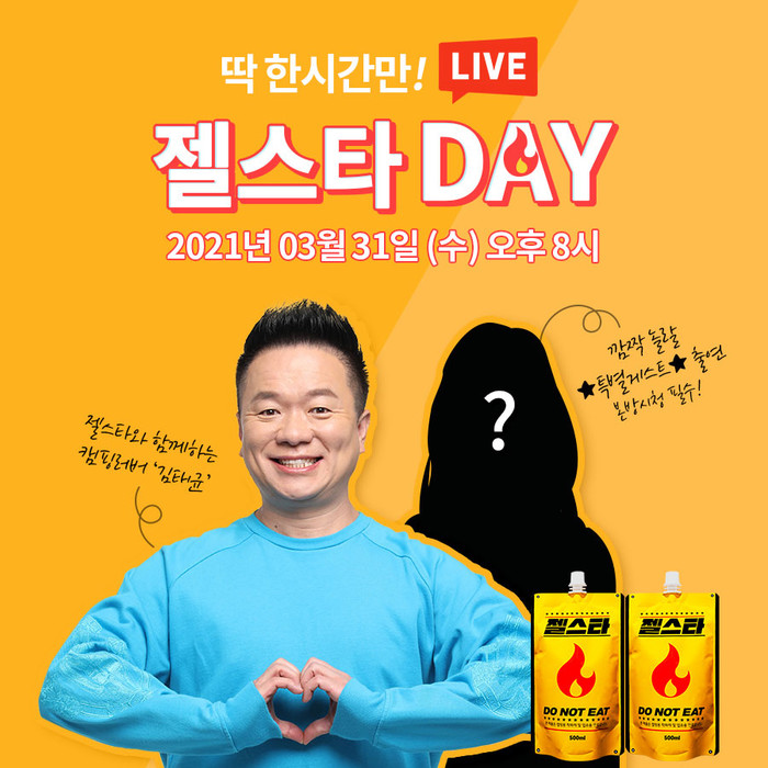 이번 쇼핑 라이브는 젤스타 브랜드를 처음 선보이는 자리로, 캠핑 히어로 전속모델 김태균과 깜짝 놀랄 특별 게스트가 함께 출연해 방송을 진행한다.