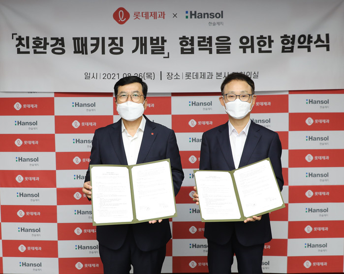 이번 협약을 통해 롯데제과는 향후 2년간 한솔제지의 친환경 포장재를 다방면으로 활용하고 양사간의 브랜드를 적극 홍보하며 관련 정보를 공유하기로 했다. 또한 지난 2월 ‘카카오 판지’에 이어 새로운 친환경 소재를 개발하는 데 적극 협력하기로 했다.