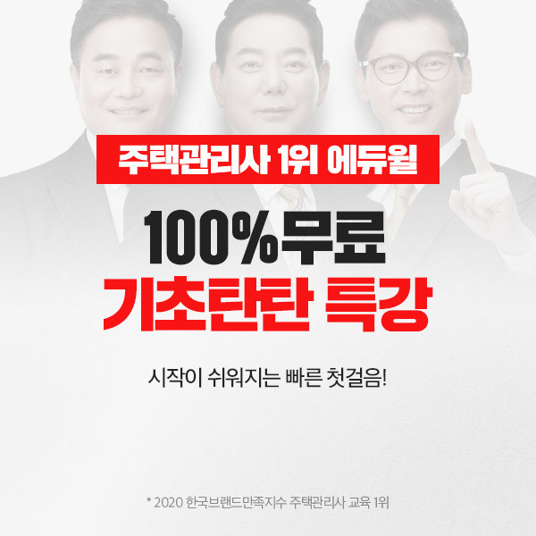 [시민일보 = 여영준 기자] 종합교육기업 에듀윌(대표 박명규)은 주택관리사 자격증을 준비하는 수험생을 위해 ‘기초탄탄 특강’을 마련하고 무료로 공개한다고 16일 밝혔다.
