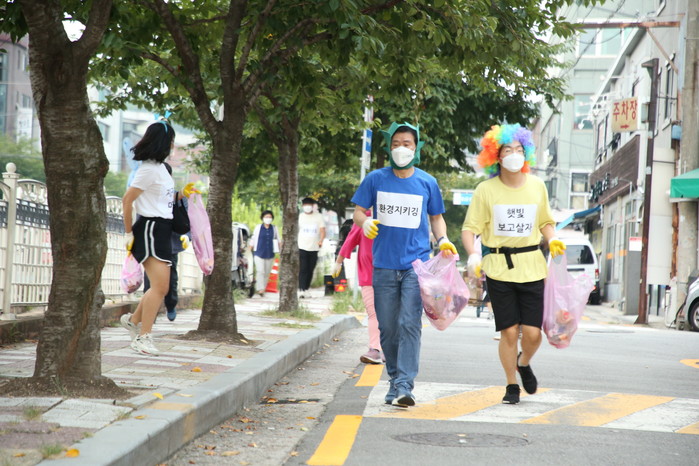 서울 성북구는 12일 세계 청소년의 날을 기념해 구 전역에서 청소년 100여명이 참여하는‘GO!GO! 청소깅’ 캠페인을 개최했다. 올해는 코로나19로 일회용품 사용이 급증해 환경오염이 심화되고 있다는 문제의식에 따라 쓰레기를 주우며 조깅하는 플로깅 활동을 기획했다. 사진은 이날 이승로 구청장(왼쪽)과 청소년들이 조깅하며 쓰레기를 줍고 있는 모습. (사진제공=성북구청)