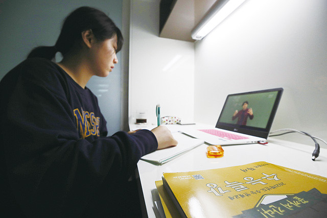 온라인 개학을 하루 앞둔 8일 서울여자고등학교에 재학 중인 고등학교 3학년 서채연양이 자택에서 온라인 강의를 들으며 예습하고 있다. 코로나19 여파로 미뤄지던 전국 초·중·고등학교 개학은 9일 고3·중3 개학을 시작으로 다른 학년들도 순차적 온라인 개학을 하게 된다. 늦은 개학으로 대학수학능력시험(수능)은 오는 11월19일에서 2주 연기된 12월3일에 치러진다.