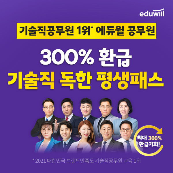 에듀윌 공무원 ‘300% 환급 기술직 독한 평생패스’는 합격할 때까지 평생 무제한 수강이 가능하며, 환급 기간 걱정 없이 언제든 기술직 공무원 시험에 합격만 하면 수강료를 환급받을 수 있는 과정이다. 언제든 최종 합격 시 수강료 100%를 환급하며, 최초 합격 이후 오는 2023년 12월31일까지 다른 직렬에 추가로 합격하면 200% 추가 환급 혜택을 누릴 수 있다.