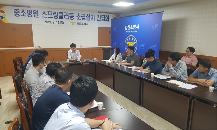 양산소방서(서장 김동권)는 지난 19일 오전10시부터 양산소방서 소회의실에서 양산시 중소병원 관계자 15명을 대상으로 소방시설 설치 소급적용에 대한 간담회를 개최하였다고 밝혔다.