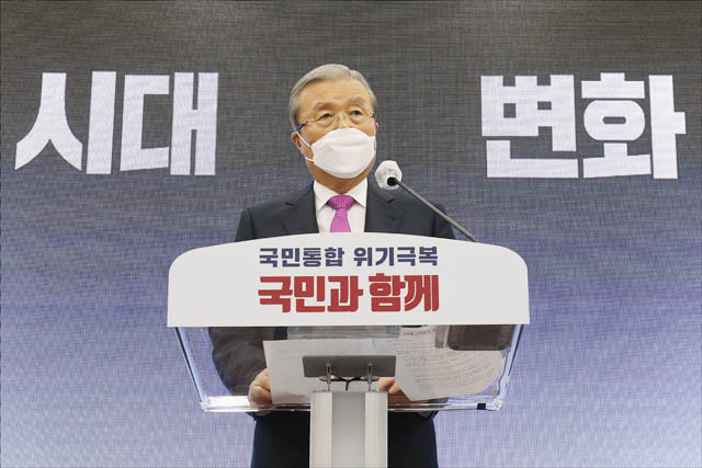 국민의힘 김종인 비상대책위원장이 3일 오전 서울 여의도 국회에서 취임 100일 기자회견을 하고 있다.