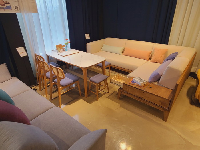 이와 함께 월넛, 오크, 티크, 뉴송 등 천연원목으로 제작한 6인용원목식탁을 공장도가에 판매하고 있으며 매장에 전시되었던 식탁세트를 원가에 판매하는 행사도 진행한다.