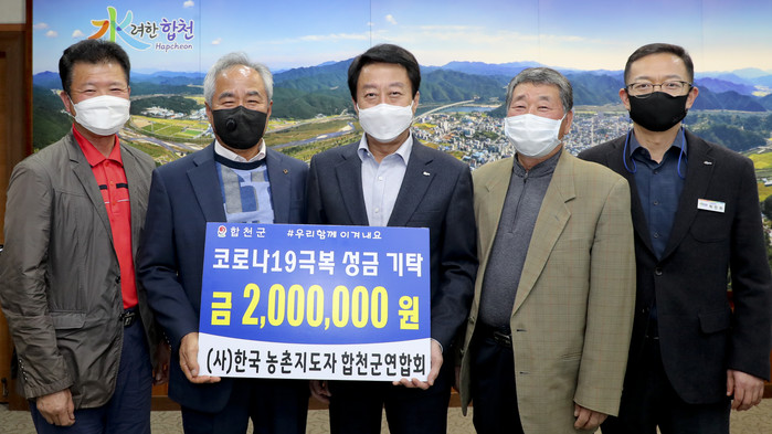 합천군은 (사)한국농촌지도자 합천군연합회(회장 안영길)에서 지난 25일 합천군청을 방문해 코로나 19로 어려움을 겪고 있는 군민들을 위해 써 달라며 200만원을 기탁했다고 밝혔다.