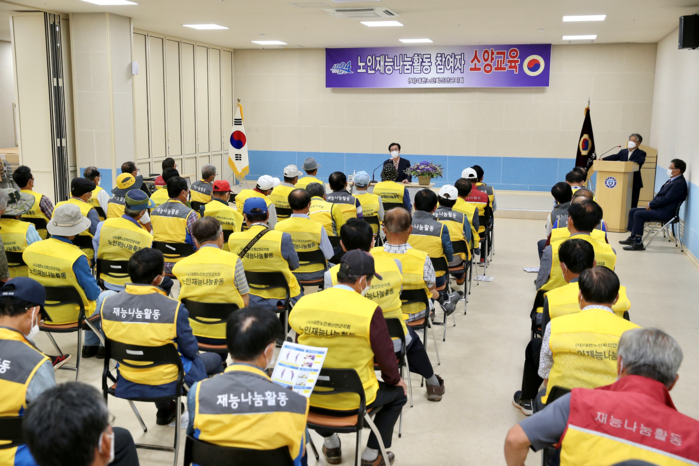 대한노인회 신안군지회(지회장 오호근)는 지난 8일 신안공설운동장 대회의실에서 노인재능나눔활동사업 참여자 90명을 대상으로 소양교육을 실시했다.