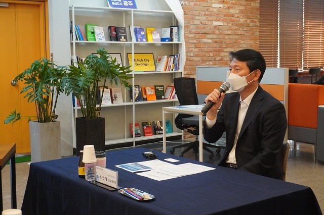 [광주=정찬남 기자] 조인철 광주광역시 문화경제부시장은 1일 동구 인공지능 창업캠프에서 인공지능 스타트업 기업과 예비 창업자들의 애로사항을 청취하고 해법을 제시하는 ‘AI종합지원센터 일일센터장 데이’에 참석했다.