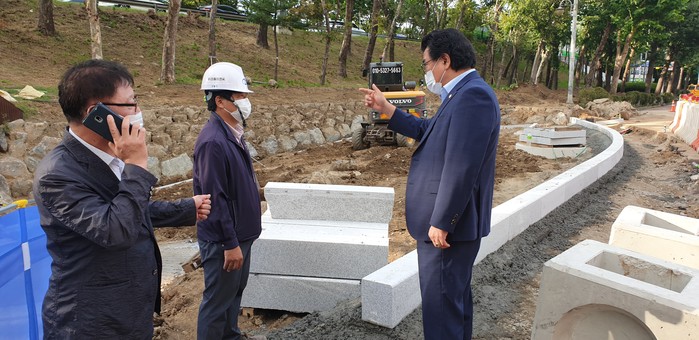 이에 방 위원장은 암사동 주민들의 한강공원 이용 편의개선을 위해 직접 현장을 방문해 시공사인 (주)미동이엔씨 현장 소장을 만나 전반적인 공사 개요와 추진상황 등에 설명 들었다. 또한 향후 마무리 계획 등에 대해 질문하며 올해 말 다가올 준공에 앞서 철저하고 완벽한 마무리를 당부하기도 했다.