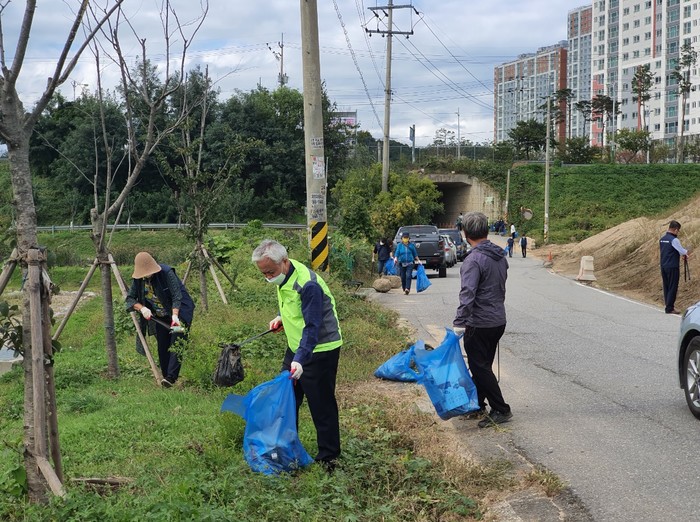 경기 남양주시 다산2동은 최근 주민자치위원회·통장협의회 등 60여명이 참여해 깨끗한 다산2동을 만들기 위한 '청소의 날' 행사를 진행했다. 사진은 이날 참여자들이 도로변에서 쓰레기를 줍고 있는 모습. (사진제공=남양주시청)