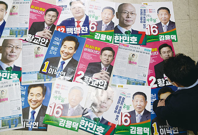 4.15 제21대 국회의원선거의 공식 선거운동 시작을 하루 앞둔 1일 오후 서울 종로구 인의동 종로구선거관리위원회에서 직원이 종로구 후보자들의 선거벽보를 살펴보고 있다.