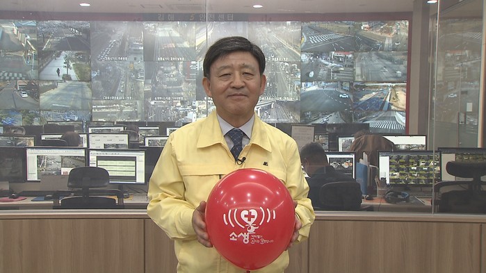 김형수 김해시의회 의장으로부터 캠페인 참여를 지명받은 허 시장은 이날 풍선 터뜨리기 퍼포먼스와 함께 ‘닥터헬기 소리는 생명의 소리’라는 취지로 사람들의 이해를 구했다.