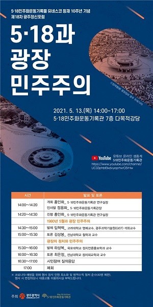 정용화 5·18민주화운동기록관장은 “광주 시민들은 1980년 5월 도청 앞 분수대에서 자유롭게 의견을 개진했다”며 “이번 포럼은 광장 민주주의에 대한 성찰의 시간으로, 방향성에 대해 논의하는 자리가 될 것으로 기대한다.”고 말했다.