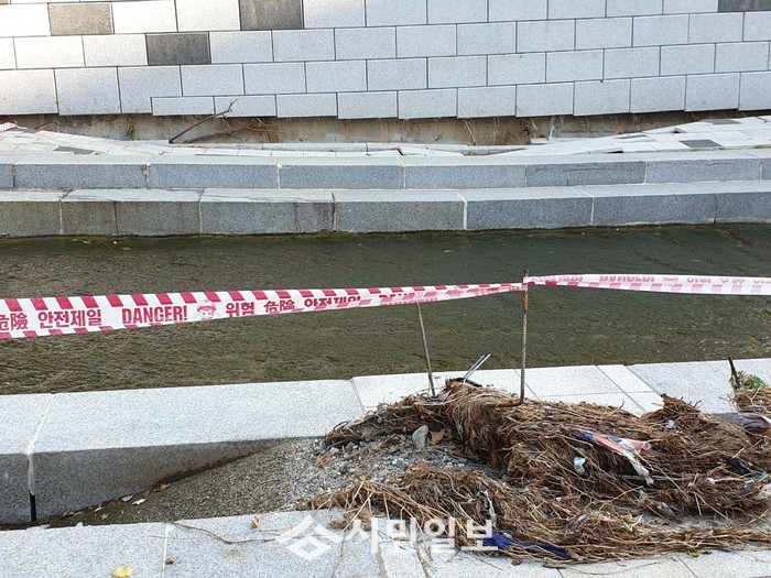 | ▲ 교방천 태풍피해 그대로 방치해 2차 사고 우려 |