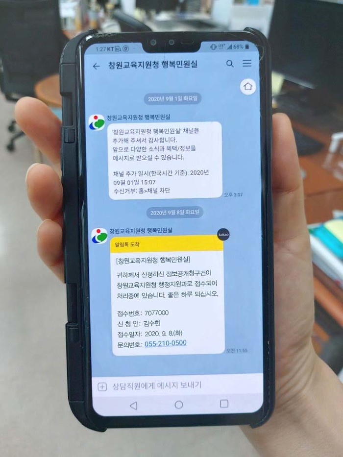 창원 교육 지원청(교육장 정우석)은 시민 편의 중심의 민원 서비스를 위해 교육청 최초로 민원 정보 안내 및 진행 상황에 대한 실시간 알림 서비스를 오는 11일부터 시행한다고 밝혔다.