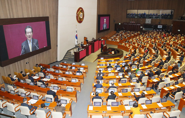정세균 국무총리가 5일 국회 본회의에서 추가경정예산(추경)안 및 기금운용계획변경안 국회 제출에 대한 시정연설을 통해 “코로나19를 빠르게 종식시키고 경제를 살려내기 위해 특단의 대책이 필요하다”면서 “과감하고 선제적인 재정의 역할이 매우 절실한 시점”이라며 신속한 추경 처리를 여야에 요청했다.