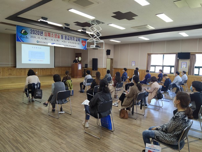지난 6일 법정의무대상자 중 군청직원들을 대상으로 보건소3층 교육장에서 실시된 첫날 교육에서는 성균관대학교 삼성창원병원 권역응급의료센터 응급의학과 전문의와 1급 응급구조사를 초빙하여 상황별 응급처치 요령, 소아 및 성인 심폐소생술 방법, 자동심장충격기 적용방법 등에 대해 중점적으로 학습하는 시간을 가졌다.