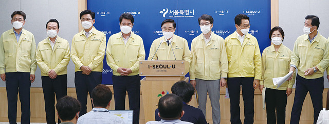 이동진 서울시 구청장협의회장(도봉구청장)이 14일 서울시청에서 시장 공석과 관련한 구청장협의회 입장문을 발표하고 있다. 협의회는 “고 박원순 서울시장의 정책과 사업이 흔들림 없이 추진돼야 한다”는 입장을 밝혔다.