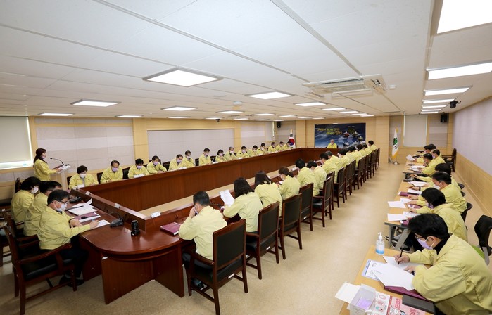 군은 21일 오후 2시 군청 별관 3층회의실에서 소속 간부공무원들을 긴급 소집, 김준간 부군수 주재로 ‘코로나19 긴급 대응 점검회의’를 가졌다.