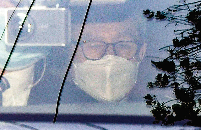 횡령 및 뇌물수수 혐의로 징역 17년형을 확정받은 이명박 전 대통령이 2일 서울 강남구 논현동 자택에서 서울중앙지검에 출석하기 위해 차량을 타고 이동하고 있다. 이 전 대통령은 검찰 출석 후 동부구치소로 재수감 된다.
