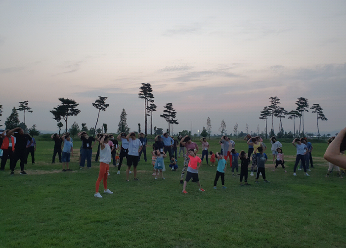 | 아리랑 오토캠핑장에서 달빛 요가 체험 하는 중 |