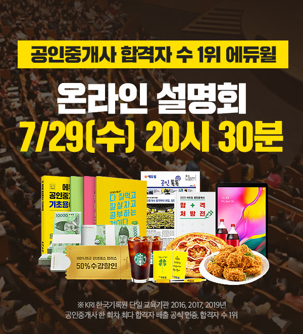 오는 29일 오후 8시30분 시작하는 공인중개사 ‘온라인 설명회’는 약 3개월 가량 남아 있는 공인중개사 시험을 앞두고 효율적인 공부 전략과 초단기 합격비법을 공개한다.