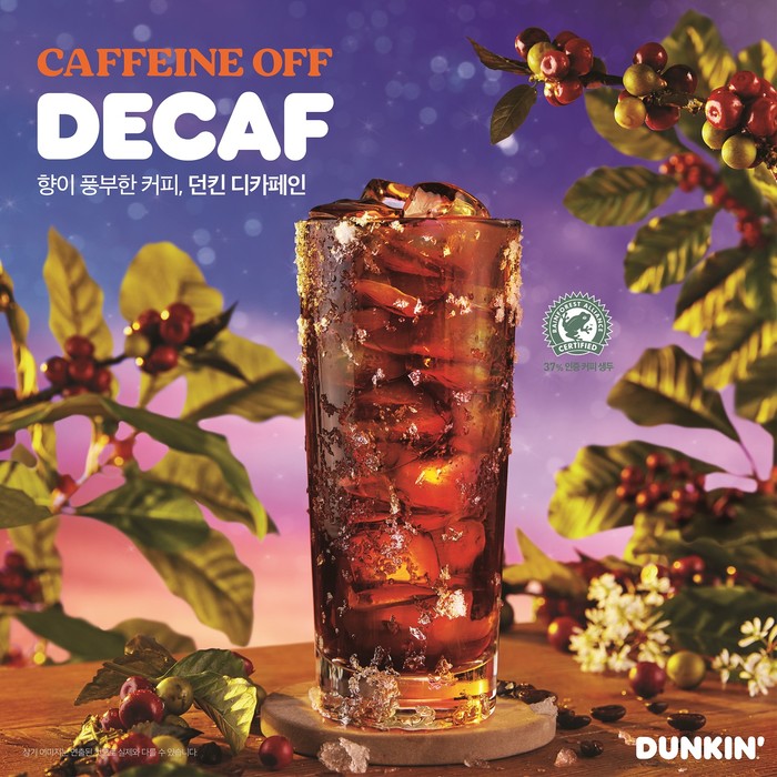 이번에 출시된 던킨의 첫번째 디카페인 커피는, 카페인 함량을 96.9% 제거했으며, 더욱 풍성한 맛과 향을 가진 것이 특징으로, 카페인에 민감한 고객들은 물론, 늦은 오후나 밤에도 카페인 걱정 없이 커피를 즐기고 싶은 고객들을 위해 출시한 제품이다.