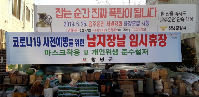 창녕군은 인근 대구광역시에서 확진자가 대량으로 발생하고 도내 시군에서도 확진자가 발생함에 따라 전통시장의 임시 휴장을 결정하였다.