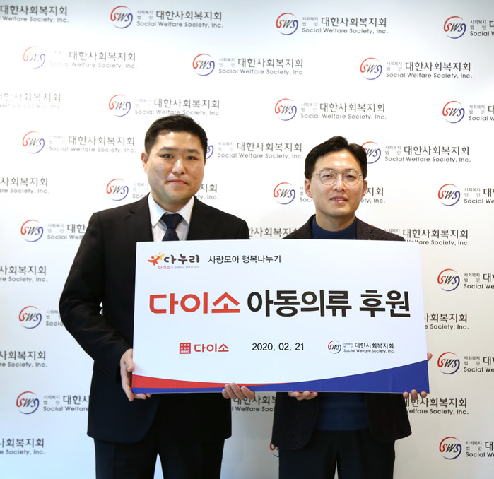 다이소는 대한사회복지회를 통해 경기북부 아동일시보호소, 한부모가족복지시설 열린집(서울), 한부모가족복지시설 잉아터(대구), 한부모가족복지시설 편한집(광주), 한부모가족복지시설 사랑샘(부산) 등 복지시설과 전국 곳곳에 있는 위탁가정에 아동복을 전달했다.
