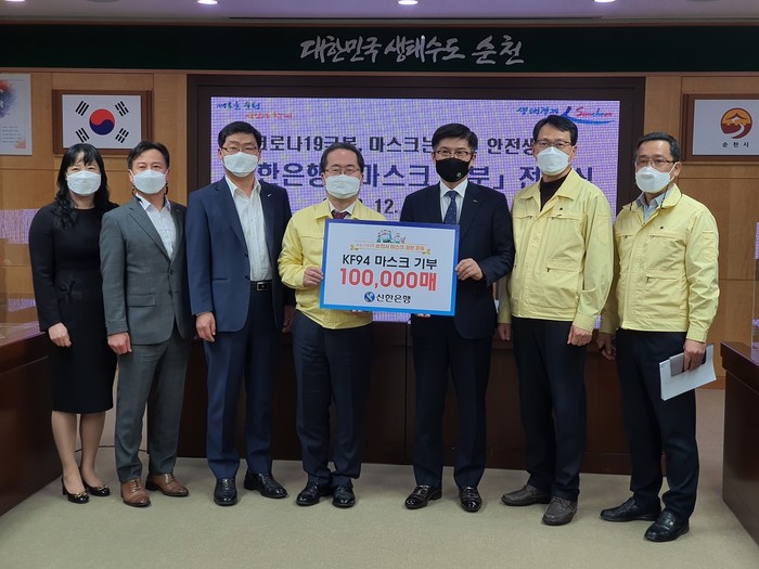 신한은행은 코로나19 감염증 사태와 관련해 순천시의 28만 시민에게 마스크를 전달하는 ‘마스크 100만개 모으기’운동의 취지에 적극 공감하며 사회적 기업으로서의 역할을 충실히 하기 위해 기부를 결정했다.