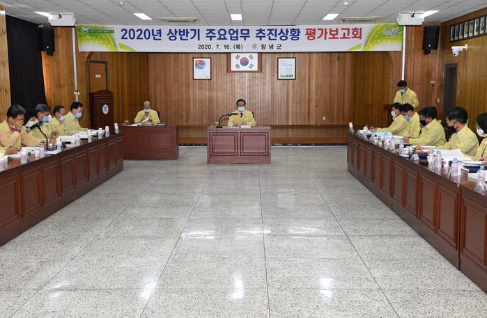 창녕군(군수 한정우)은 16일 군청 대회의실에서 한정우 군수 주재로 부군수, 간부공무원이 참석한 가운데 ‘2020 상반기 주요업무 추진상황 평가보고회’를 가졌다.