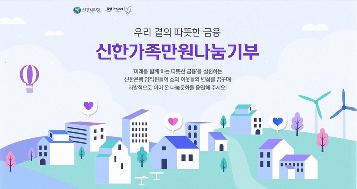 [시민일보 = 이대우 기자] 신한은행(은행장 진옥동)은 임직원 기부 프로그램인 ‘신한가족만원나눔기부’ 사업의 하반기 공모접수를 오는 26일까지 신청받는다.