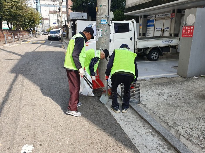 서울 중랑구 보훈단체 월남참전자회에서는 지난 31일 회원 50여명과 함께 면목동 사가정로 일대에서 대청소를 실시했다. 사진은 월남참전자회 회원들이 청소를 하고 있는 모습.(사진제공=중랑구청)