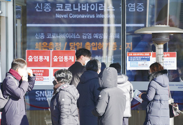 신종 코로나바이러스 감염증 확진자 4명이 추가됨에 따라 국내 확진환자수는 퇴원한 환자 1명을 포함해 23명으로 늘어났다. 6일 21번째 환자가 격리병상에 입원해 있는 것으로 알려진 서울 종로구 서울대병원에 본관에 신종 코로나바이러스 감염증 관련 출입제한 안내문이 붙어 있다.