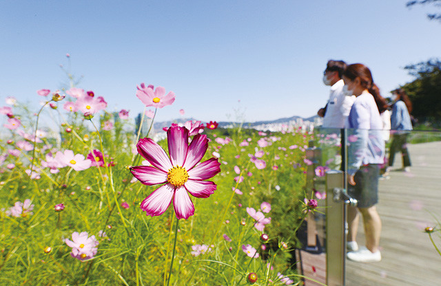 낮과 밤의 길이가 같아진다는 절기상 추분(秋分)인 22일 오후 서울 마포구 하늘공원에 코스모스가 피어 있다.
