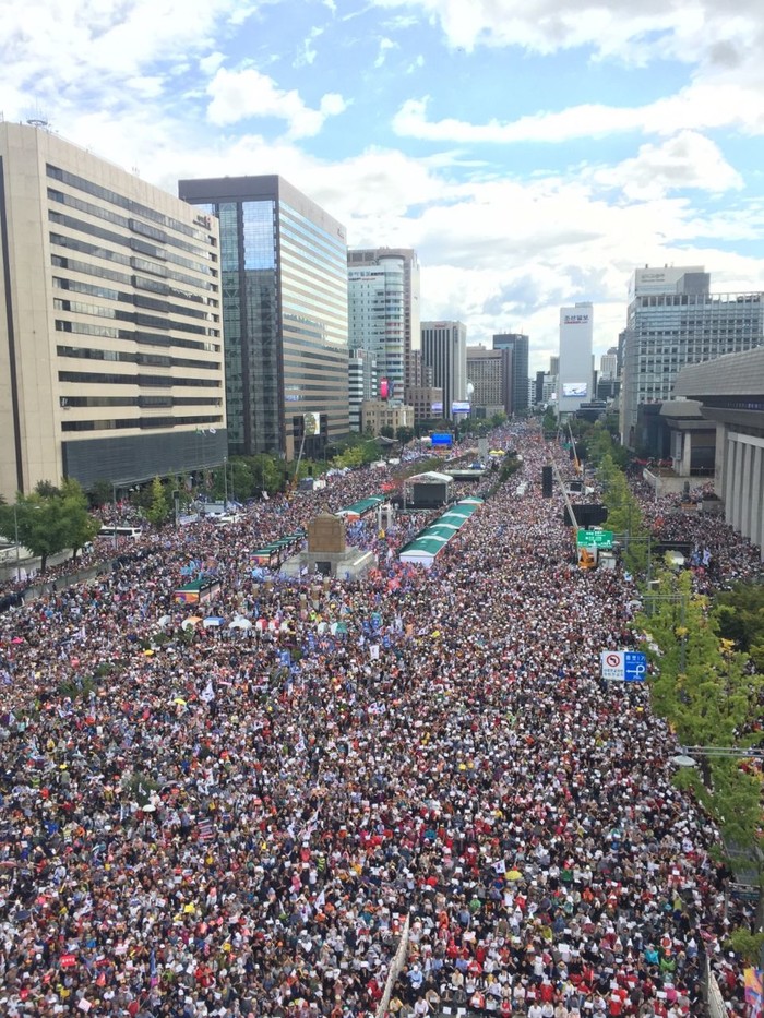 3일 오후 서울 광화문광장 주변이 자유한국당 관계자와 범보수단체 등이 각각 개최한 집회에 참여한 시민들로 가득 차 있다.