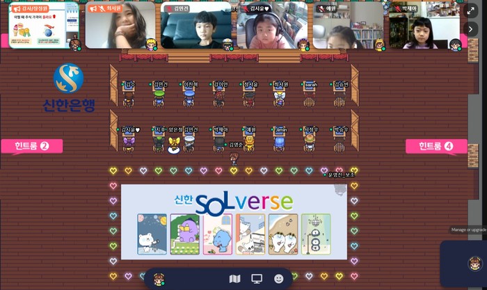 ‘신한 Solverse 메타금융스토리’는 교육에 참여하는 초등학생들이 안전하게 자택에서교육에 참여하고 서로 재미있게 소통하면서 금융을 쉽게 배울 수 있도록 메타버스 플랫폼에 구현한 금융교육 프로그램이다.