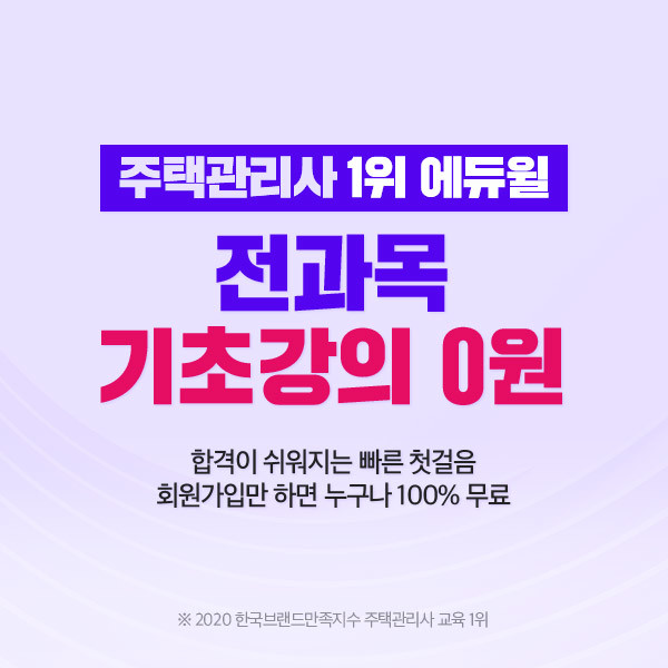 [시민일보 = 황혜빈 기자] 주택관리사 2년 연속 최고득점 합격자를 배출한 종합교육기업 에듀윌(대표 박명규)이 ‘전 과목 기초강의 0원’을 마련하고 무료로 제공한다.