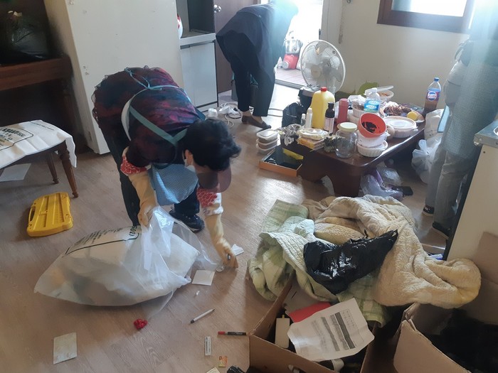 | ▲ 2인 2조 구성된 인력이 '우렁각시 사업' 대상자의 집을 치우고 있다. (사진제공=순천시청) |