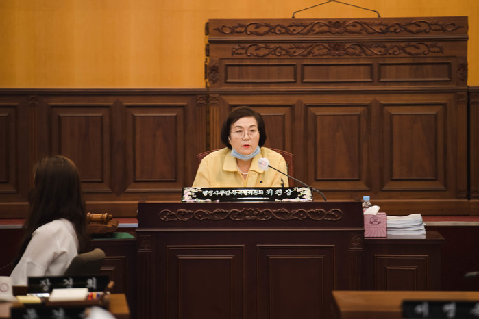 | ▲ 박삼례 위원장이 행감 총평을 하고 있다.(사진제공=광진구의회) |