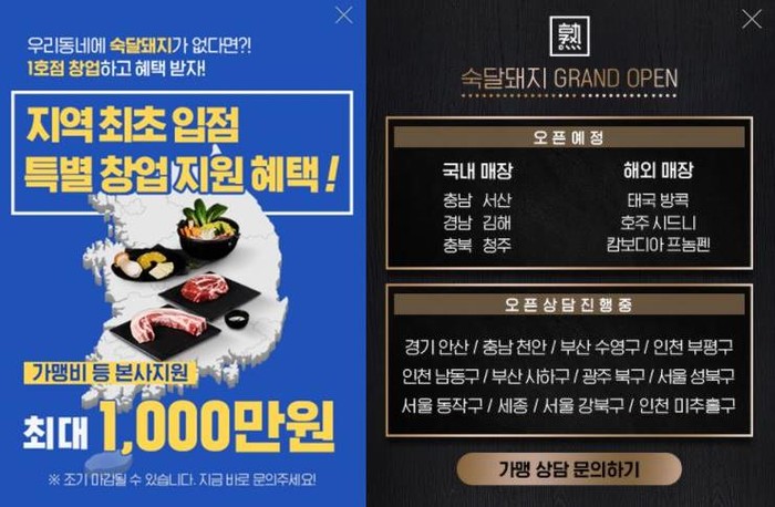 이에 숙달돼지는 국내 매장 △충남 서산점 △경남 김해점 해외 매장 △태국 방콕점 등이 오픈 예정이며 오픈 상담을 활발히 진행하고 있다.