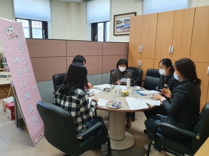 경기 김포시 월곶면이 최근 행정복지센터 회의실에서 시 복지과 희망복지팀, 치매안심센터 실무자가 참석한 가운데 위기가구 문제결을 위한 '제1차 통합사례회의'를 열고 한부모 부자가정에 대한 지원방안을 모색했다. 사진은 관계자들이 회의를 진행하는 모습. (사진제공=김포시청)