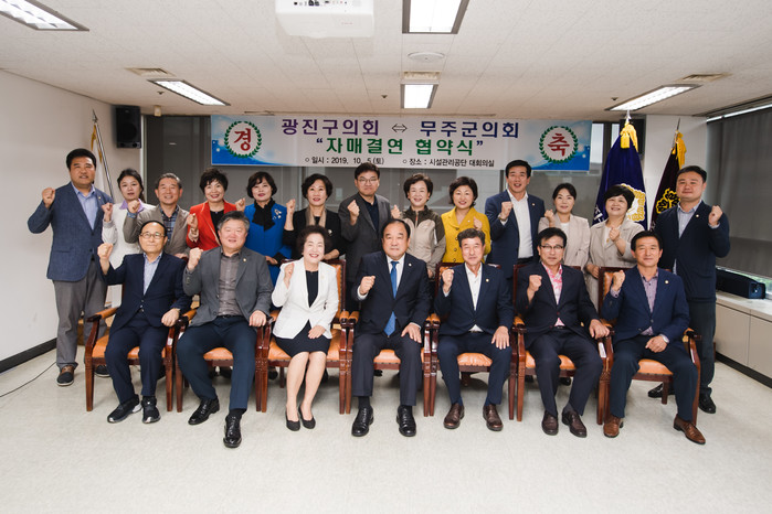 [시민일보 = 여영준 기자]서울 광진구의회(의장 고양석)가 지난 5일 무주군의회와 개원 이래 최초 도·농간 자매결연 협약을 체결하고 의정 및 지역경제 활성화 등 전 분야에 걸친 내실 있는 교류를 약속했다.